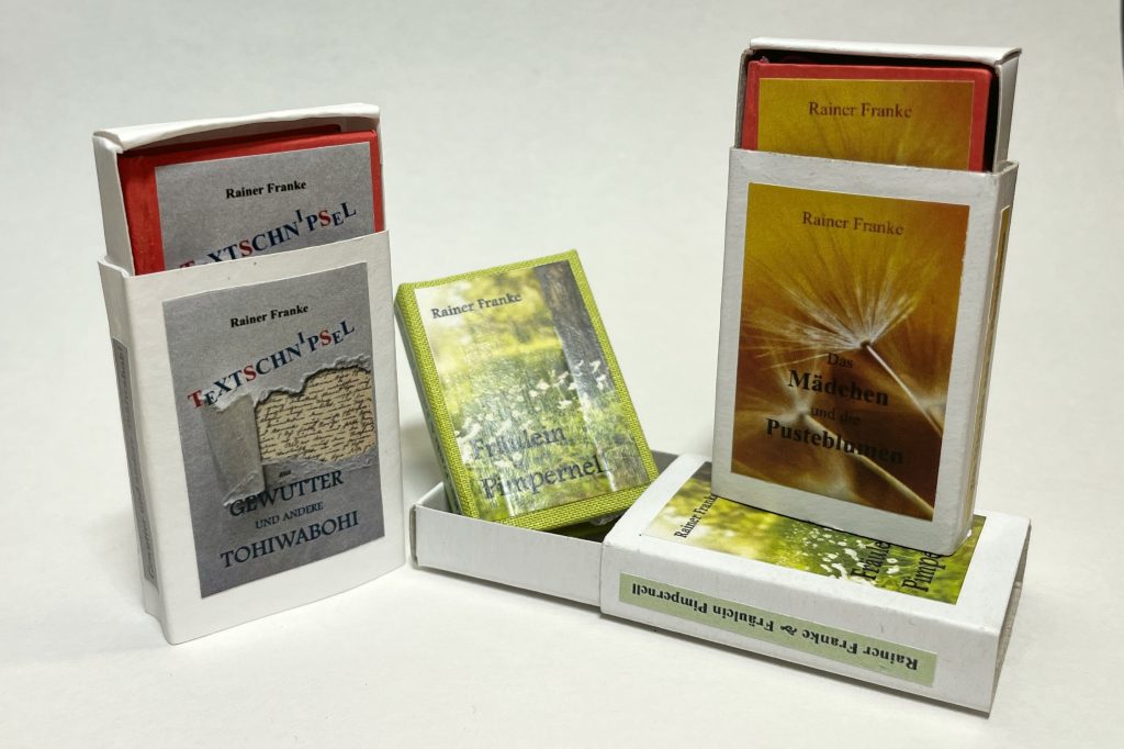 In diesem Zusammenhang haben wir auch über mein Projekt „Schachtelbuch“ gesprochen. Inzwischen ist schon der dritte Titel der Edition „Schachtelbuch“ von mir in reiner Handarbeit produziert worden.
